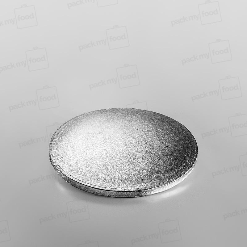 Our Silver Round Cake Drums are made of strong, recyclable paperboard with embossed foil.
